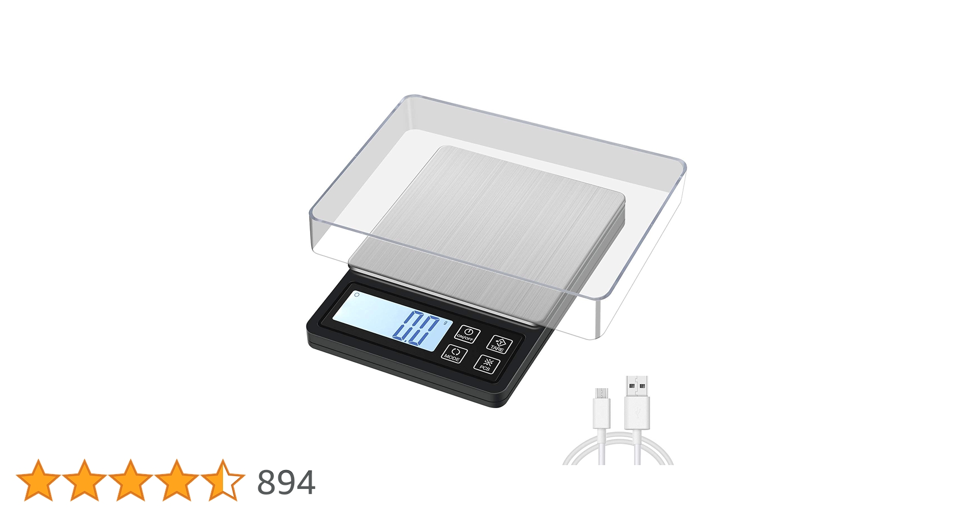 このスケール、日本のアマゾンで見つけたこれとデザインが同じですね。こちらは0.01g単位で量れるそうですよ。