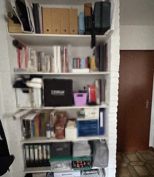 その本棚にできた隙間に、必要だけどどこに置いてよいのかわからない、もっと良い置き場のないモノを置き始めたのがまずかった!