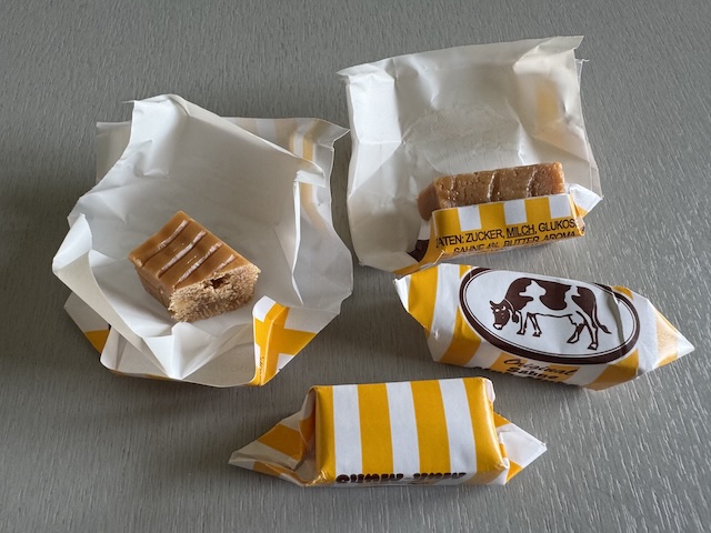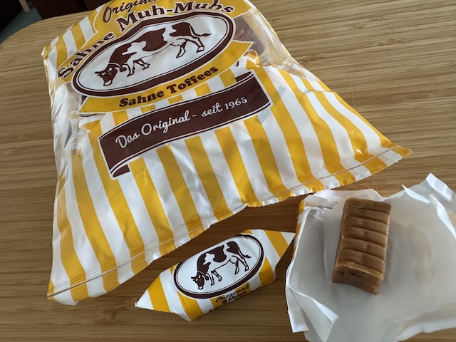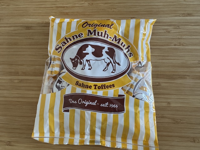 トフィーと言うと硬い食感のキャラメルですが、このザーネトフィーであるSahne Muh-Muhsは見た目と触った感じは硬いけれど、食べるとすぐにほろほろと崩れて(溶けて?)とても柔らかいです。