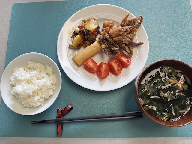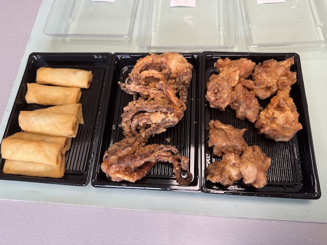 野菜春巻き、イカの唐揚げ、鶏唐揚げ。