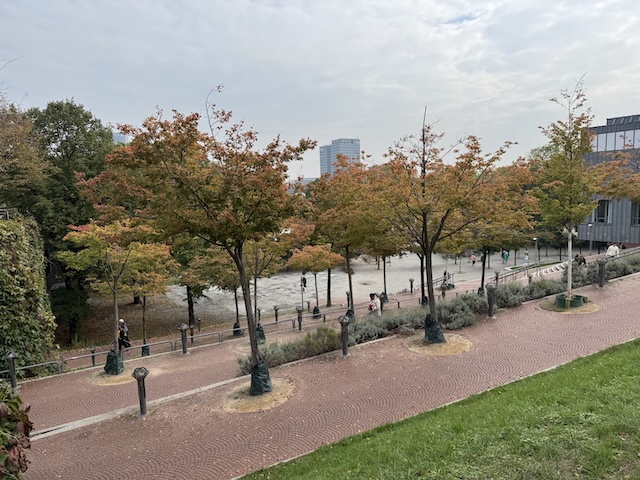 春にここに来ると桜が咲いていてとても綺麗なのですが、9月も末となると木々が秋らしくなっている。