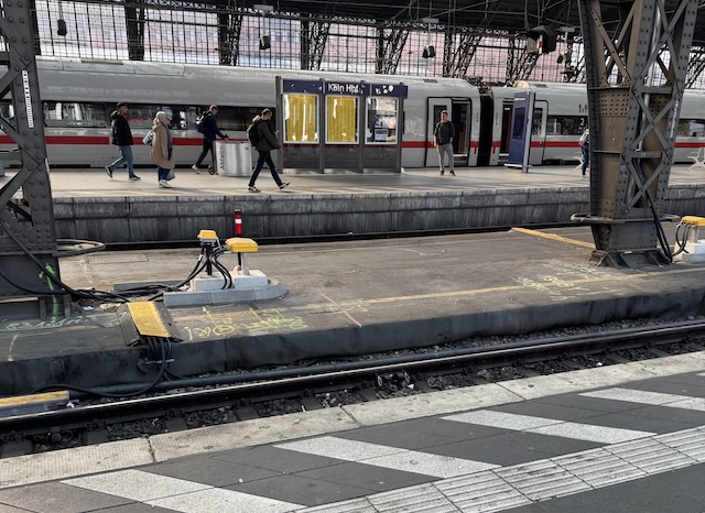 当然、「時刻表通りには走らないドイツ鉄道」だから、この橋の先の駅のホームが空いていなくて入ることができない電車が立ち往生するのです。