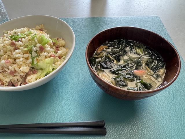 チャーハンと味噌汁。いや、ここはチャーハンと言わずに「炒めたご飯」とでも言っておこうかな?