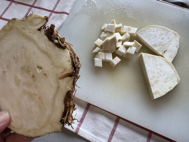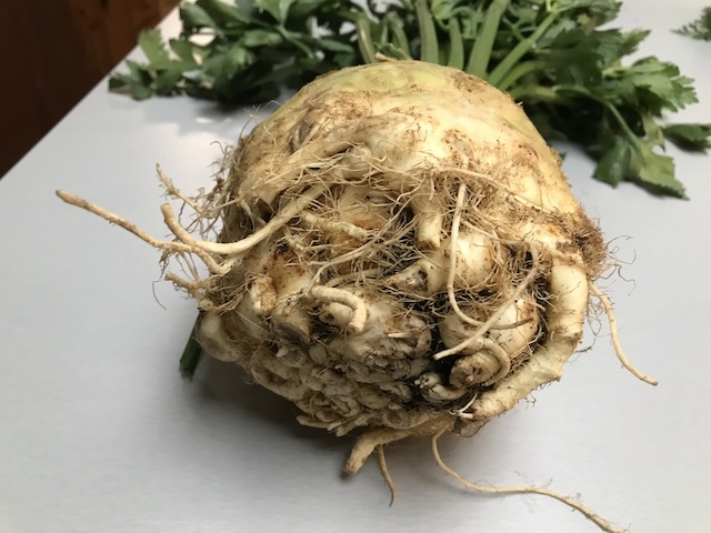 10月も下旬と寒くなったので、本日はこの「根セロリ」ことセルリアックをスープに使いました。