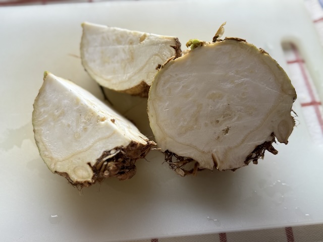 先日はキャベツをもらい、今日はセルリアック。