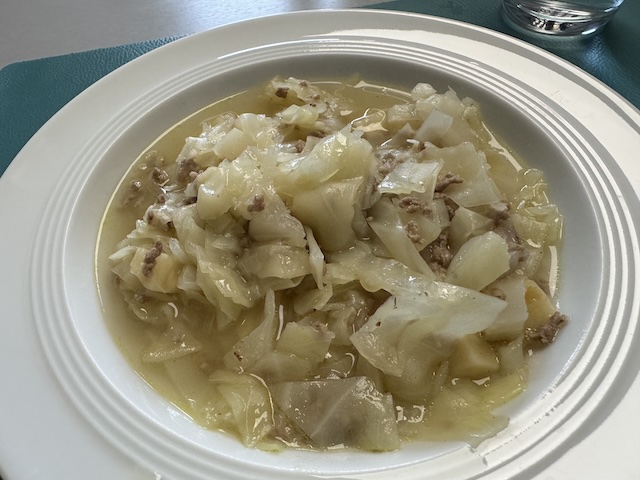 柔らかくなったキャベツ(ドイツの硬いキャベツ使用)とひき肉とセロリの香りが嬉しい、寒い日にぴったりな夕食となりました。