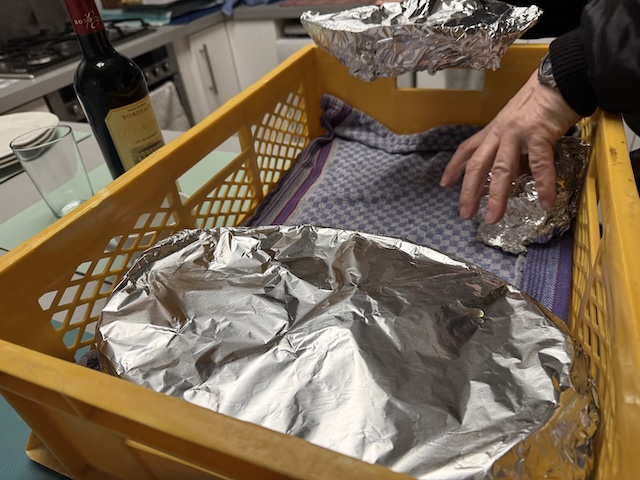 テイクアウトでも容器は磁器。アルミ箔で覆ってあるだけ。