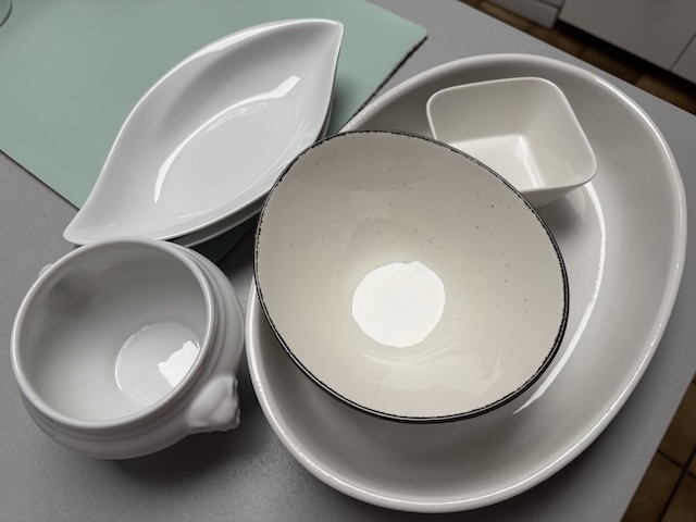 デポジット不要で貸してくれた食器たち。明日にはレストランに返却します。
