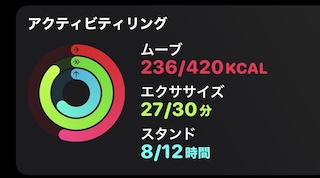 この3つの輪、少なくとも「ムーブ」と「エクササイズ」は毎日クリアしたい!