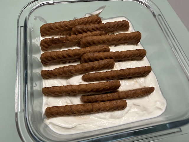 この時はドイツではおすすめされていたロータスのカラメルビスケットが家になかったので、別のビスケットを使いました。