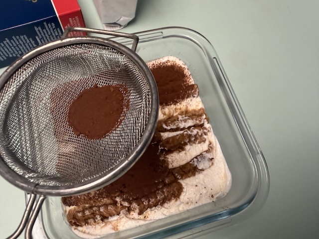 - ティラミス風にするには=ココアパウダーと濃い目に入れたコーヒー