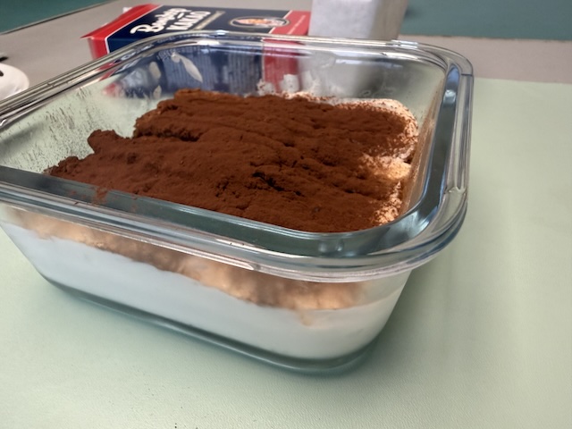 - ティラミス風にするには=ココアパウダーと濃い目に入れたコーヒー
