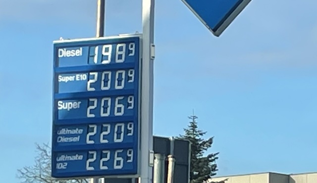 2022年のある日のガソリンの値段。2.06ユーロでも悲鳴をあげていたあの頃。