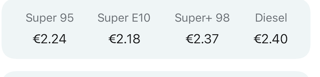 一時帰国中に耳にしていたけれど、本当にガソリンの値上げが酷くて、昨日見たら「1L=2.24ユーロ」