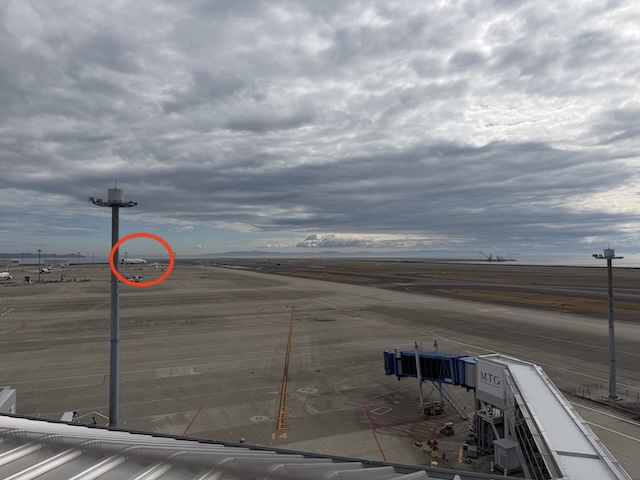 早朝のフライトだから前日に空港入りをして、展望デッキを歩いていたら…