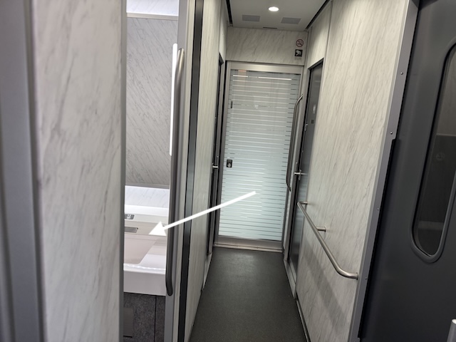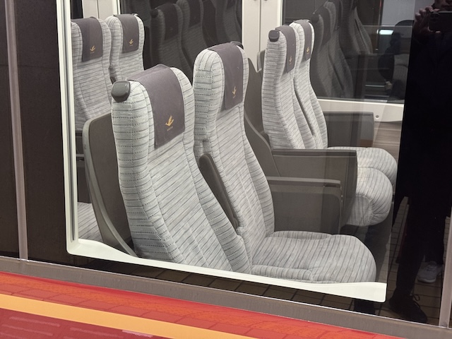 プレミアムを予約しようかと思ったけれど、このシートは去年乗った「しまかぜ」に似ている(同じかな?)ので、今回はレギュラー車両に。