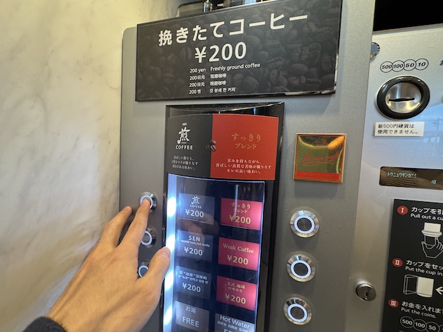 現金でしか買えないので、小銭を用意しておきましょう。(1000円札からの両替機はありました)